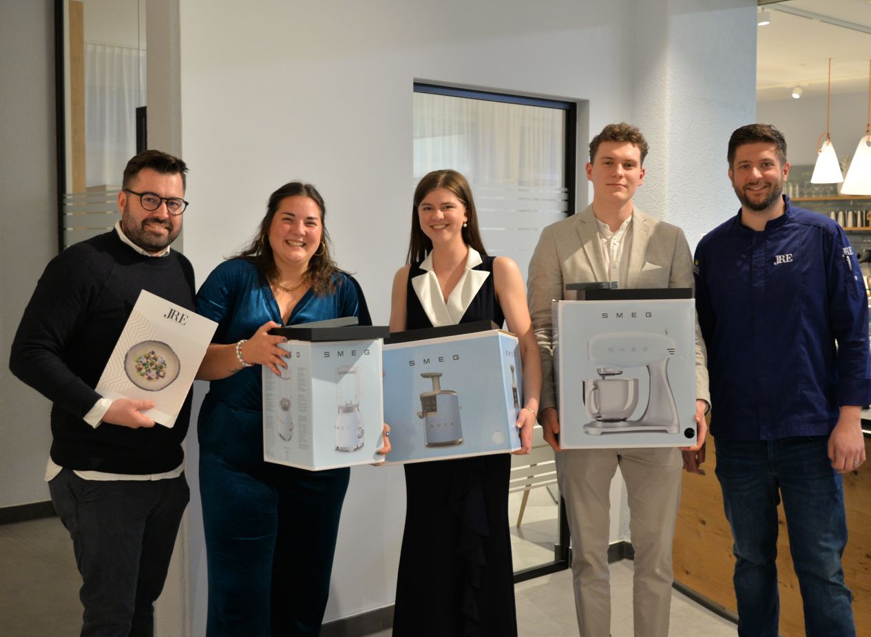 Die JRE Genuss-Akademie ergänzt die klassische dreijährige Ausbildung zum Koch oder zur Köchin in einem Betrieb der Jeunes Restaurateurs und der DEHOGA Akademie mit einer Zusatzqualifikation. Hierbei werden die Azubis für die besonderen Erfordernisse der Spitzengastronomie – unter anderem von wechselnden JRE Köchinnen und Köchen – geschult. Genau für diese Zusatzqualifikation wurden die Schülerinnen und Schüler am vergangenen Dienstag geprüft. Und zwar von drei JRE-Spitzenköchen: Benjamin Maerz („Restaurant Maerz“, Bietigheim-Bissingen), Jason Grom („Die Burg“, Donaueschingen-Aasen) und Franz Berlin („Berlins KroneLamm“, Bad Teinach-Zavelstein) engagierten sich gemeinsam mit zwei Lehrern der Landesberufsschule Bad Überkingen als Prüfer. „Alle Auszubildenden haben auf sehr hohem Niveau bestanden. Wir können stolz auf unseren Nachwuchs sein“, freut sich Benjamin Maerz, der im Vorstand der Vereinigung auch Patron der JRE Genuss-Akademie ist. Am besten schnitt Emilia Montz („TROYKA“, Erkelenz) ab, gefolgt von Johannes Eickhof („Söl’ring Hof“, Sylt) und Esther Waldherr („Mural“, München). Für den ersten Platz gab es ein Stipendium in Höhe von 5.000 Euro, das auf einem Weiterbildungskonto gutgeschrieben wird.