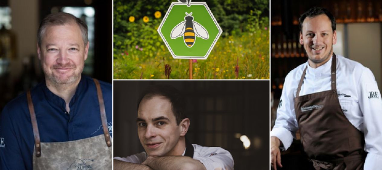 Unter dem Titel „BioBienenApfel trifft Haubenküche“ lädt Andreas Döllerer zwei weitere Jeunes-Restaurateurs-Spitzenköche (JRE) ein – Klemens Schraml vom Restaurant Rau in Großraming und Markus Rath vom Schlosskeller Südsteiermark, Seggauberg - und kocht mit ihnen ein Honig-Apfel-Menü: