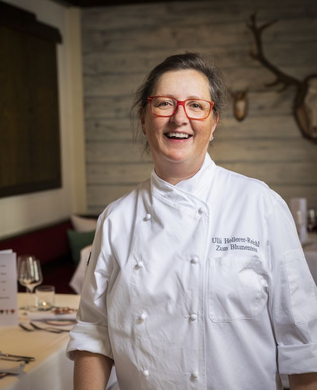 Ulli Hollerer-Reichl ist Chefin im Restaurant Zum Blumentritt. Nach ihrer Ausbildung in der Tourismusschule St. Pölten, absolvierte sie eine Lehre im Landhaus Bacher. Im Anschluss bereiste sie die Welt und arbeitete in Restaurants in Kitzbühel und Florida. 1997 übernahm sie den Familienbetrieb in St. Aegyd am Neuwalde gemeinsam mit ihrer Schwester und Sommeliere Christa Hollerer. Im Restaurant Zum Blumentritt begeistert Ulli mit esquisiter Alpiner Küche und wure bereits mehrfach für ihre delikaten Speisen ausgezeichnet.