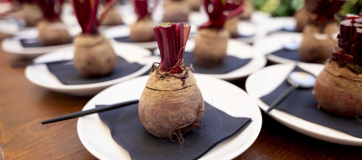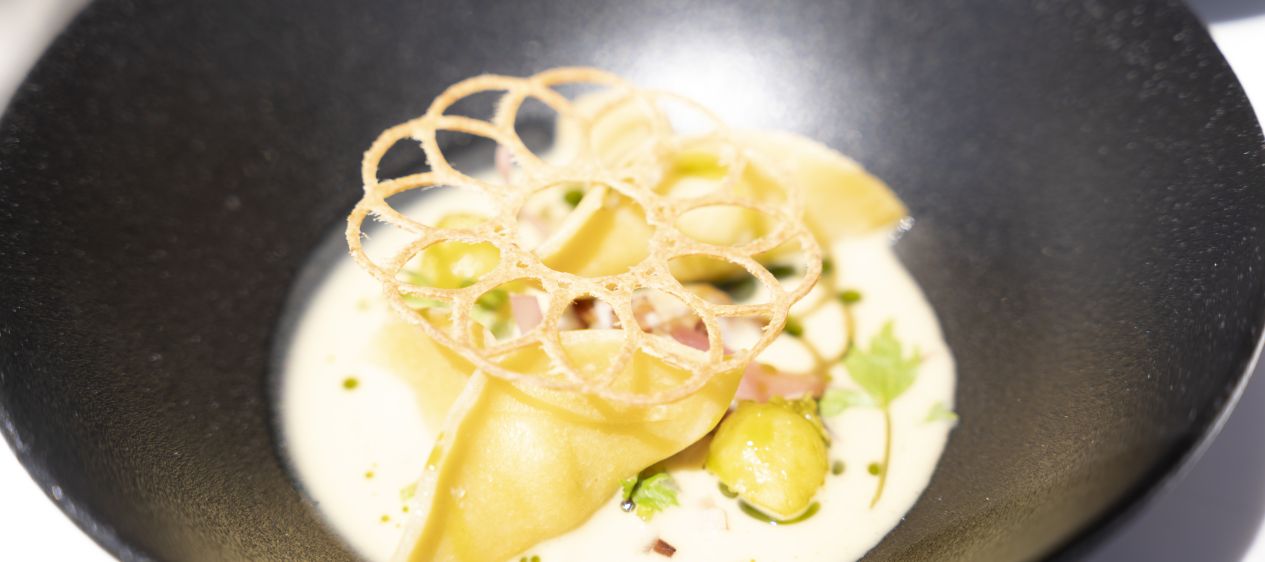 RANDE, ERBSEN – UND KIESELSTEINE. «Mich erfüllt es mit Stolz, Teil dieser dynamischen Bewegung zu sein», nahm Pascal Melliger den Ball auf. Er war zusammen mit Partnerin Daniela Jaun und seinem Lehrling Max Stettler nach Aubonne gekommen. JRE, das seien nicht nur Kollegen, sondern auch Freunde. Man unterstütze sich gegenseitig, und das helfe immens. Wie zutreffend diese Worte waren, zeigte sich nicht zuletzt bei all den Anwesenden: Dabei waren etwa Grégoire Antonin («Nuovo Bourg», Saillon VS, 16 Punkte), Cyril und Nadège Freudiger («Auberge de Bogis-Bossey» VD, 16 Punkte), Noémie und Mathieu Courrier («Auberge de la Couronne», Enney FR, 15 Punkte), Joeffrey Fraîche und Helena Collaud («Ô33», Avenches VD, 16 Punkte) und stiessen mit einem Glas Laurent-Perrier an. Dazu gab es Rande in verschiedenen Texturen mit einer Emulsion aus Steinklee. Erbsen im Gläschen mit einem Sorbet aus fermentierten Schoten und Joghurt-Espuma. Oder eine Kartoffelkrokette mit Frischkäse und Chili, die aussah wie ein Kieselstein.