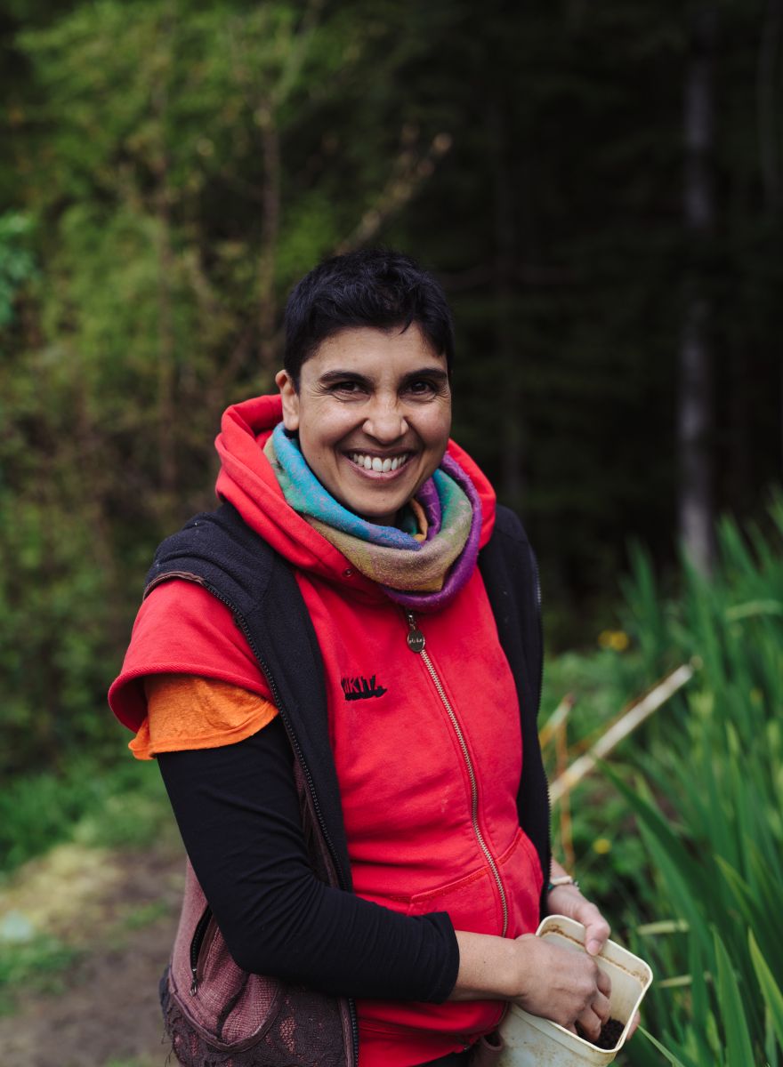 DIE FORELLEN-FLÜSTERIN. Priti steht an einem der Becken mit einem Kübel Fischfutter und wirft eine «Hampfele» ins Wasser. Weil es ein Naturteich ist, brauchen die Forellen wesentlich weniger Futter als in herkömmlichen Fischzuchten. «Zeigt euch mal von eurer besten Seite», ruft sie den Forellen zu. Priti spricht mit den Fischen, wie mit einem Pferd oder mit Katzen. «Die Regenbogenforellen hören das, was ich sage, viereinhalb mal lauter», erklärt sie Patrick Germann und seinem Team. Priti und Sergio Casini haben eine besondere Beziehung zu den Tieren und zum Boden, den sie bewohnen und bestellen. Bevor sie 2013 den Hof in Sangernboden übernahmen, reisten sie mit Ross und Wagen durch Europa. «Auf unserer Reise haben wir die schönen, aber auch die weniger schönen Seiten der Lebensmittelproduktion gesehen», erinnert sich Sergio. So wuchs die Idee von dem eigenen Hof. «Wir produzieren alles selbst, dann wissen wir auch, was wir essen.»