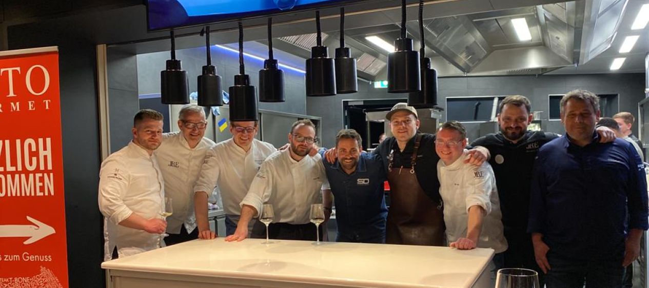 Fast 70 Gäste hatten sich im Restaurant von Alexander Wulf, Ronny Schreiber und Marcel Kokot zusammengefunden, um Geld für den guten Zweck zu sammeln: Zwischen 200 und 500 Euro kosteten die Eintrittskarten pro Person. Für das leibliche Wohl der Gäste sorgten mehrere Mitglieder der Jeunes Restaurateurs (JRE). Die Spitzenköche Jockl Kaiser (Wirtshaus Meyers Keller, Nördlingen), Philipp Wolter (PHOENIX Restaurant & Bar, Düsseldorf), Oliver Röder (Burg Flamersheim, Euskirchen), Christian Mittermeier (Villa Mittermeier, Rothenburg ob der Tauber) und Steffen Disch (Raben Horben, Horben) waren angereist, um ihren Kollegen Alexander Wulf zu unterstützen. Für die musikalische Untermalung sorgte der ukrainische Violinist Edgar Lorenz. „Uns war es wichtig, ein Zeichen zu setzen und den Menschen aus der Ukraine zu helfen“, sagt Alexander Wulf, der selbst in Sibirien geboren ist. Wulf, der sich als „weltweit einziger Sternekoch mit russischen Wurzeln“ bezeichnet, hilft aber nicht nur in seinem Restaurant, sondern auch privat. So hat er vor kurzem zwei ukrainische Familien bei sich zuhause aufgenommen.