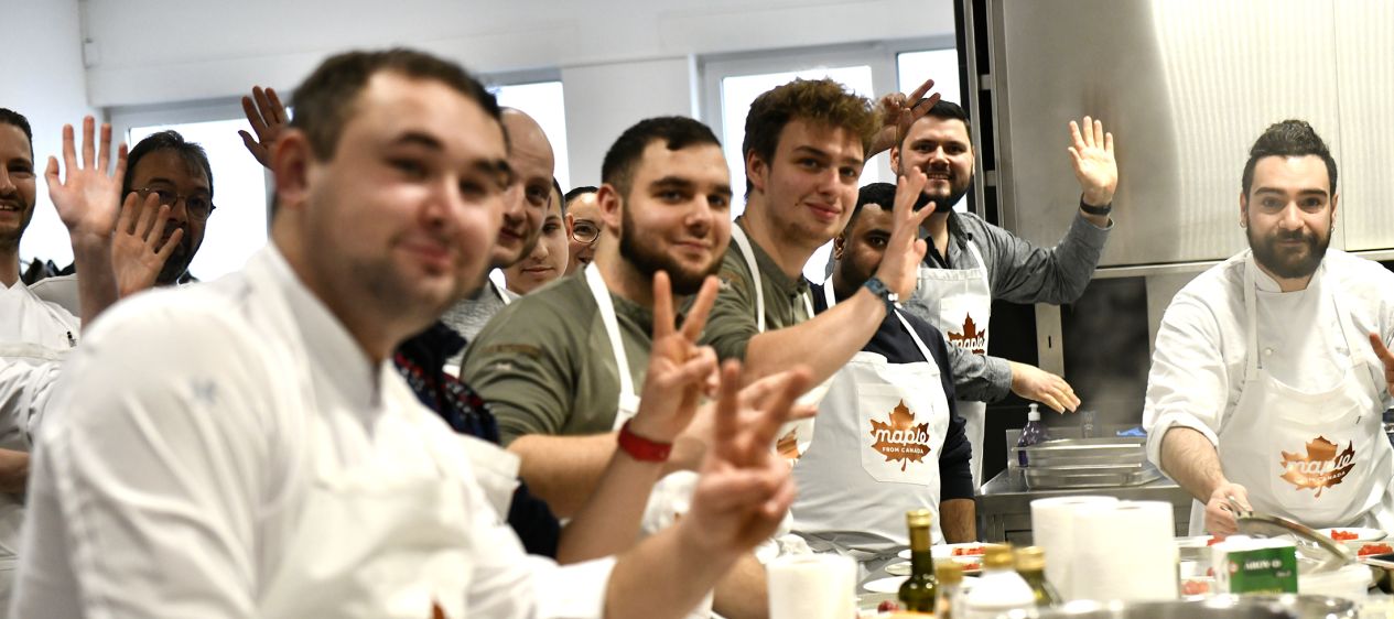 Ahornsirup ist vor allem in Kombination mit Pancakes bekannt. Im Rahmen einer Flavour Pairing Masterclass der Jeunes Restaurateurs (JRE) Deutschland und von „Ahornsirup Kanada“ wurden der süßen Spezialität im Februar nun aber höhere Ehren zuteil: Spitzenkoch Christian Mittermeier („Villa Mittermeier“, Rothenburg ob der Tauber) zeigte 22 Teilnehmenden in der Showküche von Gastro Total in Obertshausen, wie man Ahornsirup auch für herzhafte Gerichte der gehobenen Küche nutzen kann.