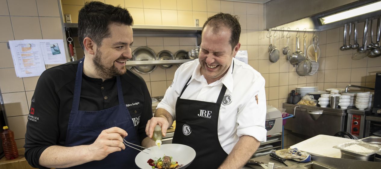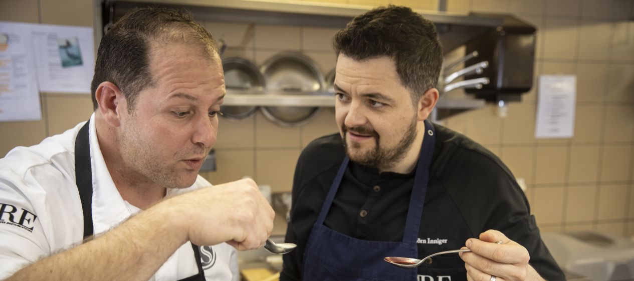 Die zwei verstehen sich bestens, harmonieren in der Küche: Stefan Bader kocht bei Björn Inniger im Alpenblick.