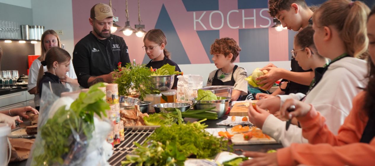 Das soziale Engagement der JRE zeigte sich auch an anderer Stelle: Im Rahmen von JRE Chefs4Kids gab Alexander Wulf („TROYKA“ in Erkelenz) zwei Kinderkochkurs-Workshops – rund 28 Kinder zwischen 10 und 14 Jahren durften mitmachen, Produkte kennenlernen, Fragen stellen, gemeinsam kochen und am Ende zusammen essen. Ein Erlebnis, das nicht nur Appetit auf mehr macht, sondern auch Werte vermittelt: Teamgeist, Wertschätzung für Lebensmittel und Freude am Kochen.
