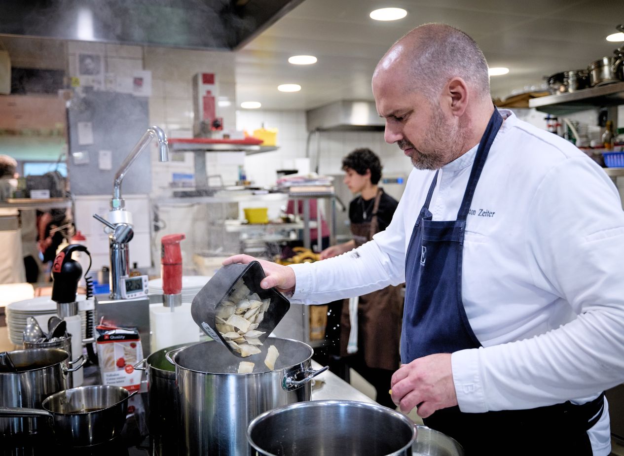 Das Gros der Jeunes Restaurateurs war bereits am Sonntag zu GV angereist. Gastgeber Fernando Nando Michlig verwöhnte die Truppe nach dem Business-Teil mit zehn (!) Amuse bouches, darunter eine vielgerühmte Variation von Entenleber mit Aprikosen und Äpfeln («meine Walliser Art», so Michlig), danach gabs Rouget & Ratatouille, Hirsch-Entrecôte mit Polenta und Rotkraut-Strudel. Gaston Zeiter steuerte seine berühmten Ravioli mit Eierschwämmen bei. Zum Finale verblüffte Michlig, der auch Konditor gelernt hat, mit einer Dessertlandschaft aus bildschönen Schoggi-Pilzen. «An denen habe ich den halben Tag lang ‹baschtlet›. Scheint sich gelohnt zu haben», meint Nando. Die Pilze waren die Shooting-Stars des Abends, auf jedem Handy verewigt.