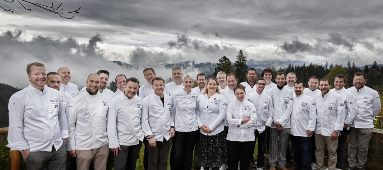 «KEIN LANGWEILIGES CLÜBLI.» Auf einem Feuerring-Grill von Ofyr braten draussen auf der Terrasse Kräuterseitlinge für einen Pilz-Kebap und heisse Marroni werden auch noch auf dem heissen Metall geröstet. Auf dem Weg nach draussen stehen Geny und Eliane Hess an einem weiteren Stand: Der Weinhändler und Präsident der GaultMillau-Weinjury stellt zusammen mit seiner Frau den Jeunes Restaurateurs seine neuesten Entdeckungen aus der Winzerwelt vor: Die Liste reicht vom Weingut zum Rosenberg in Uri bis zu Terre Nere in Sizilien. Hess schätzt die Zusammenarbeit mit JRE wegen der engagierten Mitglieder: «Das ist kein langweiliges Clübli», bringt es der gelernte Koch und Sommelier auf den Punkt.