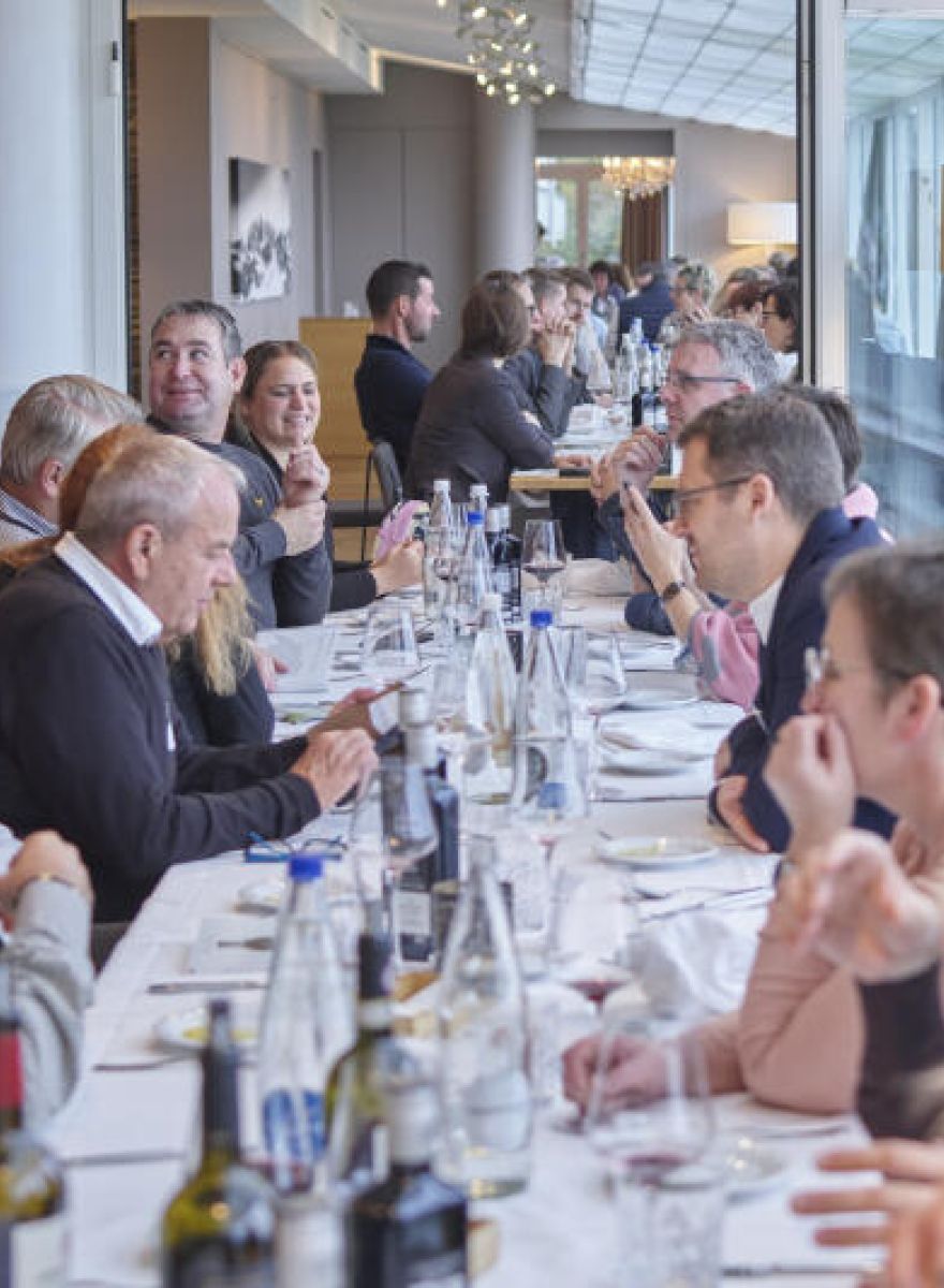 ABWESENDE NEUMITGLIEDER. Nach der Jahresversammlung am Vortag, die in eine ziemlich lange Party-Nacht im Stil der 20er Jahre für die meisten Mitglieder mündete, geht es am Montag danach traditionell um einen entspannten Ausklang und um die Geschäftspartner der Gastronomenvereinigung JRE, in der vorwiegend kleinere und mittlere (Familien-)Betriebe mit hohem Qualitätsanspruch aus der ganzen Schweiz zusammengeschlossen sind. Die beiden neuen Mitglieder allerdings können nicht teilnehmen: Manuel Steigmeiger («Fahr», Künten) musste bei seiner hochschwangeren Frau bleiben, und Christoph Hunziker («Schüpbärg-Beizli», Schüpfen) befindet sich im «Trainingslager» für den Kochwettbewerb Bocuse d’Or.