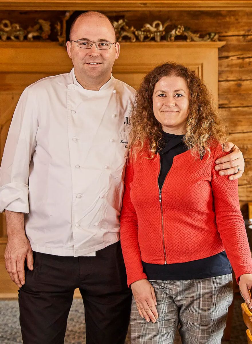 EHRE, WEM EHRE GEBÜHRT! Manuel Reichenbach begeistert seine Gäste im mächtigen Patrizierhaus in Trun GR. Sein Konzept überzeugt: Produkte aus dem Garten oder aus der Region, Kombinationen, die gewagt sind, aber nie gesucht. Der GaultMillau und Partner Mercedes-Benz zeichnen ihn als «Koch des Monats» aus. Was bei ihm auf den Tisch kommt, ist handwerklich perfekt, wird malerisch präsentiert und von seiner tüchtigen Frau Yulia zügig serviert.