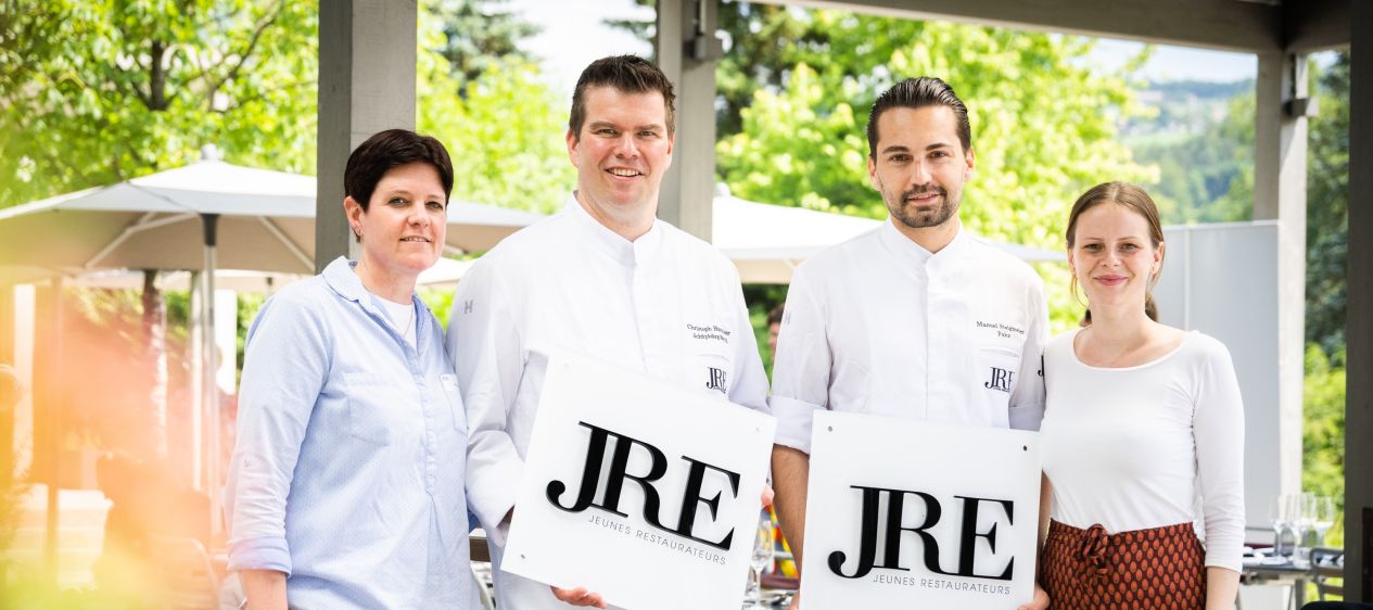 SIE HABEN GUT LACHEN. «Kennt ihr schon den neusten Gastro-Witz?», fragt Beat Stofer (Balm, Meggen) seine Kollegen der Vereinigung Jeunes Restaurateurs, die die Frage verneinen. Der Witz geht so: «Hast du genug Personal?» Keine Pointe. An diesem strahlenden Montag im Restaurant Fahr in Künten AG können die Gastronomen darüber lachen, auch wenn der Fachkräftemangel im Alltag omnipräsent ist. Die Jeunes Restaurateurs haben sich getroffen, um den beiden neusten Mitgliedern ihr Schild zu übergeben. «Fahr»-Chef Manuel Steigmeier und Christoph Hunziker vom «Schüpbärg-Bezili» gehören nun auch zum erlauchten Kreis der Jeunes Restaurateurs.