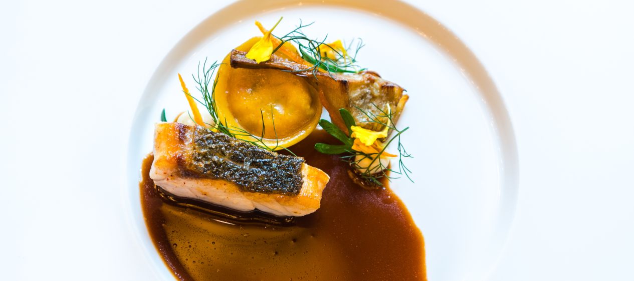 Kraftvolle Saucen, kompromisslose Produktqualität und ein klares Bekenntnis zum Handwerk: Die klassische französische Küche lebt von Präzision und Eleganz. Frédéric Morel zeigt, wie zeitlos diese Werte sind – mit Gerichten, die auf das Wesentliche reduziert sind und dabei eine besondere Tiefe entfalten. Seine Küche ist eine stille Verbeugung vor der Haute Cuisine – balanciert, fein und voller Respekt für das Produkt. Nun hat er ein feines französisches 3-Gänge-Menü für Sie zusammengestellt. Dieses Rezept bildet den ersten Gang: gebratener Wolfsbarsch mit Hummer-Ravioli, Artischockenpüree und Hummersauce. Die zarte Süße des Hummers trifft auf die erdige Tiefe der Artischocke und eröffnet das Menü mit Leichtigkeit und Eleganz. Wenn Sie dieses Gericht neugierig macht, entdecken Sie unbedingt auch die weiteren Gänge unten auf der Seite.