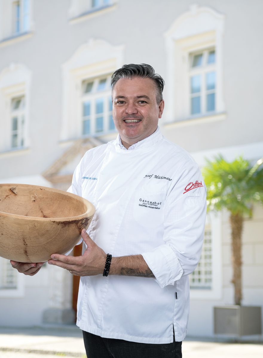 Josef MühlmannJosef Mühlmann ist Chef im Restaurant Der Gannerhof. Das Restaurant war einst die Landwirtschaft seines Großvaters, aber schon Josef’s Vater, Alois Mühlmann, verwandelte den Betrieb in ein Gourmetrestaurant. 2003 wurde Josef Teil des Küchenteams. Er erbte die Kochkünste seiner Mutter und es dauerte nicht lange, bis er als Chef durchstarten konnte. Josef ehrt die österreichische Küche und bietet traditionelle Gerichte mit modernem Touch, die er im Gannerhof anbietet.