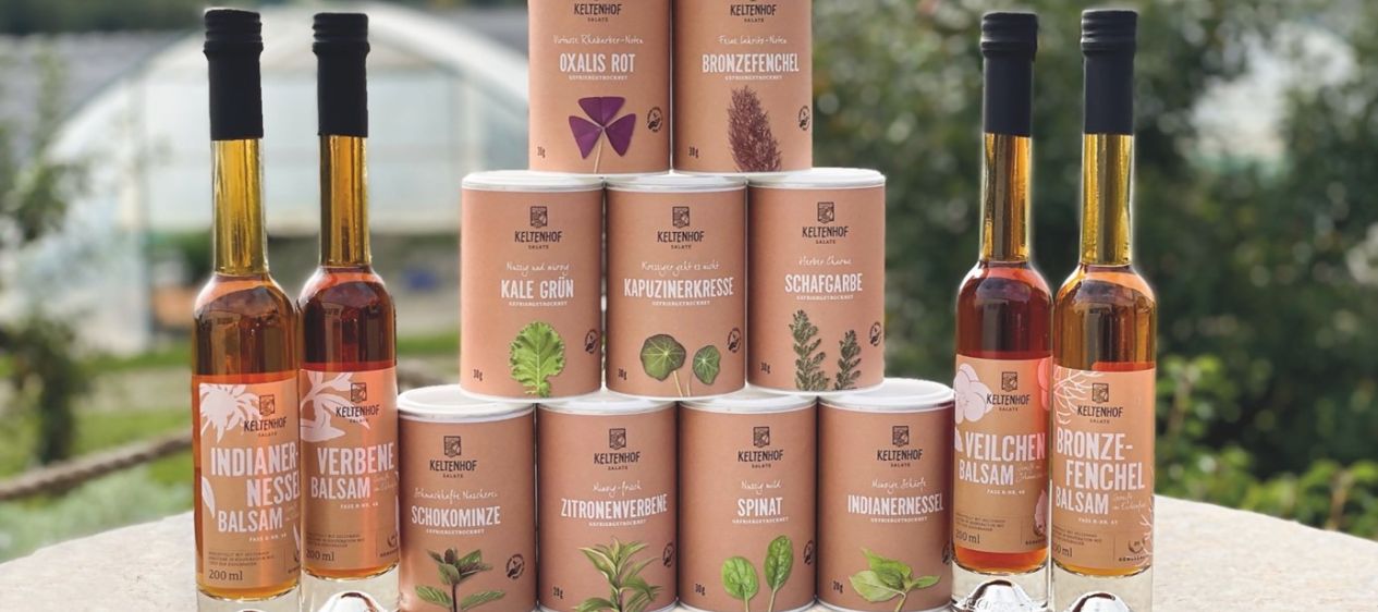 Entdecken Sie die fassgelagerten Essige mit den ausgewählten Keltenhof-Kräutern! Eine aussergewöhnlich aromatische Feinschmeckerei, die in Kooperation mit THEO der Essigbrauerei nach alter Tradition sorgfältig vergoren werden.