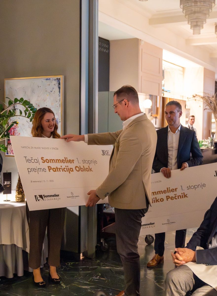 The evening also served as a tribute to the future of hospitality. JRE-Slovenia and the Sommelier Association of Slovenia awarded two rising stars, Nik Pečnik and Patricija Oblak—winners of the “Young Talents in Service” competition—with Level I sommelier course scholarships, encouraging them to pursue their careers with passion and expertise.