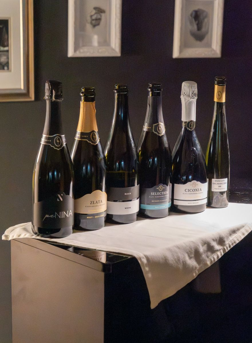 A truly unique surprise came in the form of a fashion show – but far from a traditional one! This time, the models were none other than bottles. Renowned Slovenian designers – Maja Ferme, Matic Veler, Maja Štamol Droljc, and her daughter Žana, who is boldly following in her mother’s creative footsteps with dreams of becoming a fashion designer – were invited to create a special "outfit" for the Black&White bottle, the signature sparkling wine of JRE, an association that shares the same values as the selected designers: innovation, creativity, quality, tradition, and a strong sense of family.
