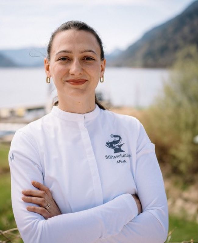 After years in fine dining, she found her culinary home by the lake. For Anja, cooking is more than a profession – it is an expression of emotion and connection to the region. Together with Florian Satran, she stands for a modern, honest, and deeply Carinthian cuisine – authentic, clear, and full of love for detail.