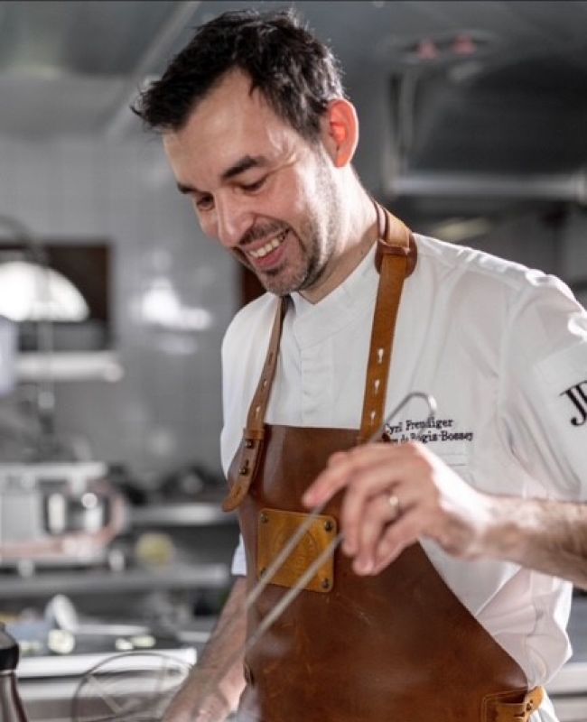 Born in Vevey, chef Cyril Freudiger began his career as a pastry chef, chocolatier and confectioner, before expanding into savoury cuisine with the same rigour and imagination. His dishes reflect both discipline and freedom: precise yet poetic, indulgent yet comforting. Drawing inspiration from local produce and the landscapes of his native Switzerland, he brings curiosity and creativity to every plate. At Auberge de Bogis Bossey, his goal is simple – to create authentic emotions through food that surprises and comforts in equal measure.