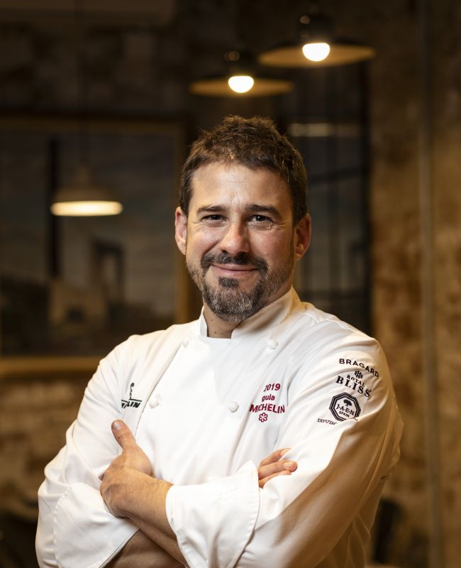 Javi Estévez has built his culinary reputation on visceral offal cuisine. Since launching La Tasquería in 2015, he's earned Bib Gourmand status and a Michelin star in 2019, retained since. He grew up cooking traditional dishes in Madrid and channels that heritage into every dish. His philosophy is clear: respect every ingredient, waste nothing, and cook from the gut. With flexible menus that surprise and welcome, Javi's cooking is tradition reborn with care, flair and sustainability.