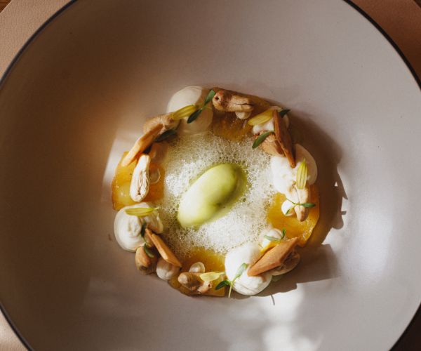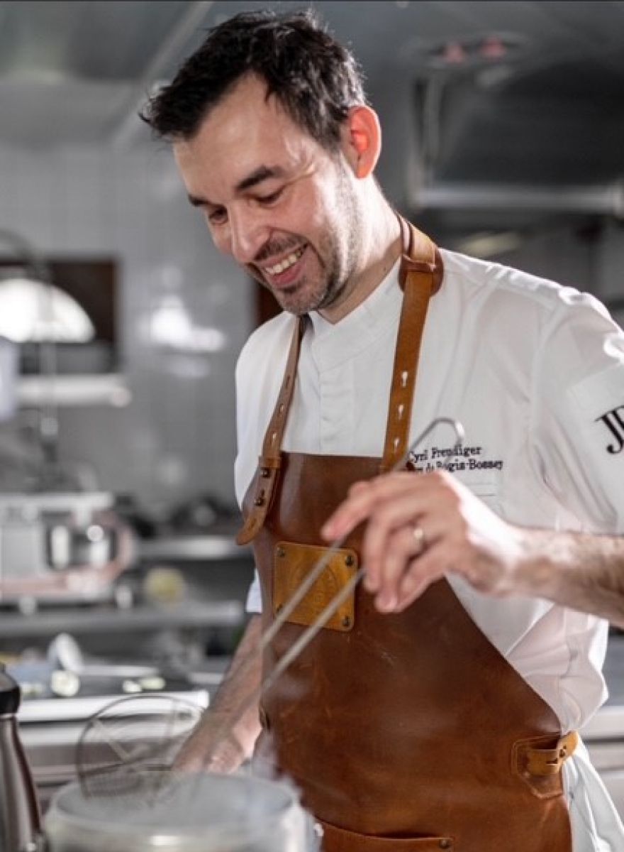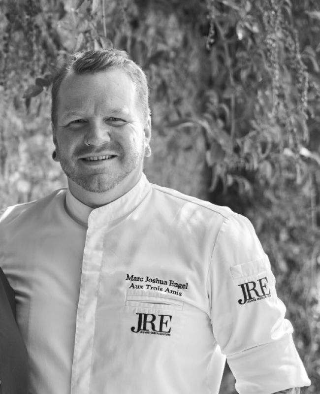 After completing an apprenticeship in Falconera's restaurant in Germany, chef Marc Joshua Engel traveled to Asia, Australia, and New Zealand to broaden his culinary horizons. Back in Europe, he continued learning under chef Markus Arnold in Bern. Several years ago, he realized his goal of opening a restaurant in the vineyards of Lake Biel, together with his partner Cynthia Lauper. Aux Trois Amis restaurant is a dream come true for them. With his passion for quality, chef Marc Joshua always strives to deliver the best gastronomic experiences to his guests. He values experimenting with new techniques and aims to expand the culinary landscape with new interpretations.