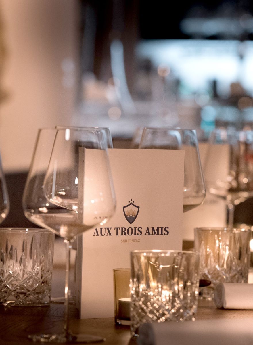 True to its name, at Aux Trois Amis restaurant good friends have joined forces: the restaurant is run by the hostess and sommelier Cynthia Lauper and head chef Marc Joshua Engel.  Enjoy the à la carte menu or order a tasteful four-to-seven-course meal. Restaurant Aux Trois Amis reinterprets regional and Swiss cuisine in an original way and prepares their dishes with passion.