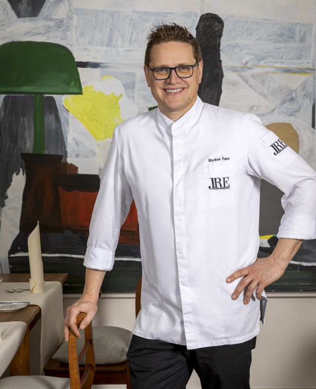 Chef Markus Pape is a native to the Sauerland region. His grandmother used to make him pea soup or pancakes with apples from their own garden. Markus was influenced by this and gained a sense of the edible treasures that can be found in your own garden. This chef learned the tricks of the trades at Hotel zur Post, by Jean-Claude Bourgueil and Dieter Müller, who gave him his culinary training. Since 2013, Markus has been in charge of the kitchen at the Meisenheimer Hof. Ever since, he has been spoiling his diners with regional delights – the same way his grandmother used to.