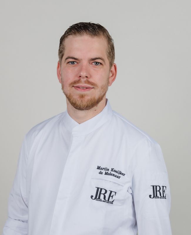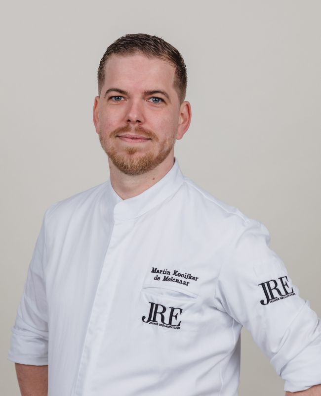 Chef Martin Kooijker joined the hospitality world at the age of fifteen, washing dishes at a restaurant in his hometown. He enjoyed it so much that he started to envision a career in the hospitality industry for himself. At eighteen he started working as an apprentice chef at restaurant De Heeren van Harinxma in Beetsterzwaag on the Lauswolt estate. In the 5-starred restaurant, he was once under the chef's guidance, but soon had responsibility for the hotel's breakfast. After this, he started working at the Michelin-starred restaurant De Basiliek in Harderwijk. Next, Martin decided to go back north, and return to his roots. In 2016 he took over restaurant De Molenaar from star chef Steven Klein Nijenhuis. According to the 2019 Michelin guide, De Molenaar is a restaurant featuring a chef who runs a wonderful and creative kitchen.