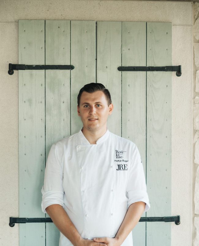 At Boškinac, chef Matija Bregeš transforms the unique ingredients of Pag Island into bold, modern plates that honour local heritage. With a Michelin star and the title of “Great Chef of Tomorrow” from Gault&Millau, his expertise shines in every detail. Bregeš’s experience in world-renowned kitchens like Geranium and Azurmendi shapes his creative touch, blending the traditions of Pag with cutting-edge techniques. Through two tasting menus, he captures the island’s essence—one rooted in its natural bounty, the other inspired by his own culinary journey. Every dish reflects a perfect balance of artistry, passion, and innovation.