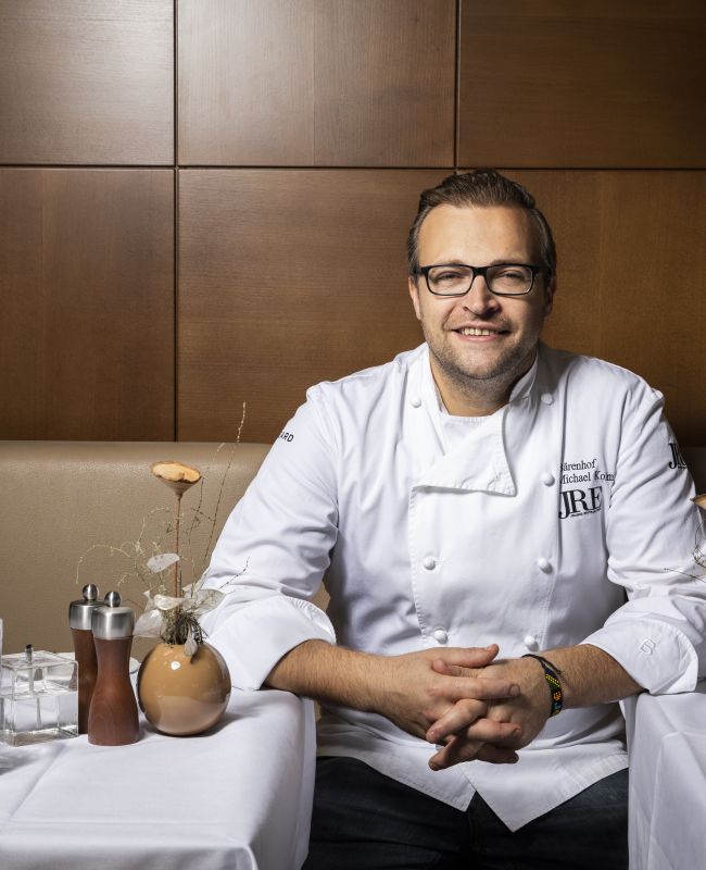 At the heart of Bärenhof’s kitchen is a dedicated chef who cooks with heart and soul: Michael Kolm. Especially when it comes to his cooking philosophy, only the very best is good enough. Chef Kolm is driven by his tremendous creativity and passion for gastronomy. With a great eye for detail, he only cooks with high-quality products and as many local ingredients as possible. But that doesn’t mean that he shies away from celebrating exotic ingredients. By combining the foreign with the regional, he creates extremely creative dishes that truly showcase his impressive craftsmanship.