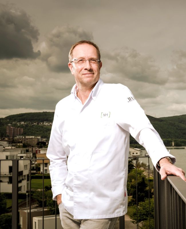 Located directly on the Rhine, the Bootshaus restaurant with its maritime style provides a wonderful setting for Nils Henkel's open kitchen. With its rustic wooden floor and reclaimed wood furniture, light-coloured linen fabrics and shabby-style leather chairs, the vintage restaurant looks as if it has always been like this. The magnificent view extends over the river meadows to the Rheingau vineyards. Chef Nils Henkel's nature-inspired cuisine is characterised by an individual and contemporary style of cooking. His colourful and fresh creations are based on the seasons and are an absolute delight for the senses. Nils and his team focus on sustainable, innovative and modern dishes with a strong emphasis on vegetables and create a symbiosis of regional and cosmopolitan cuisine.