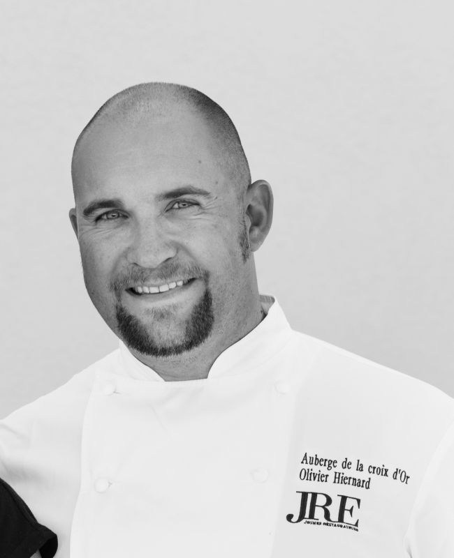 Chef Olivier Hiernard began his culinary apprenticeship in Paris, at a traditional French restaurant. After this followed a journey of improvement that took him to Switzerland, Lausanne, Verbier, Zermatt, and later to Ireland and Spain. Having gained much experience in kitchens all across Europe, Olivier eventually returned to the Jura. Here, he joined chef Georges Wenger and worked at his restaurant for four years, learning from the very best. In 2012 it was finally time for Olivier to set up his own restaurant: De la Croix d'Or. His wife Claudia Hiernard joined him and fills the role of hostess and sommelier.