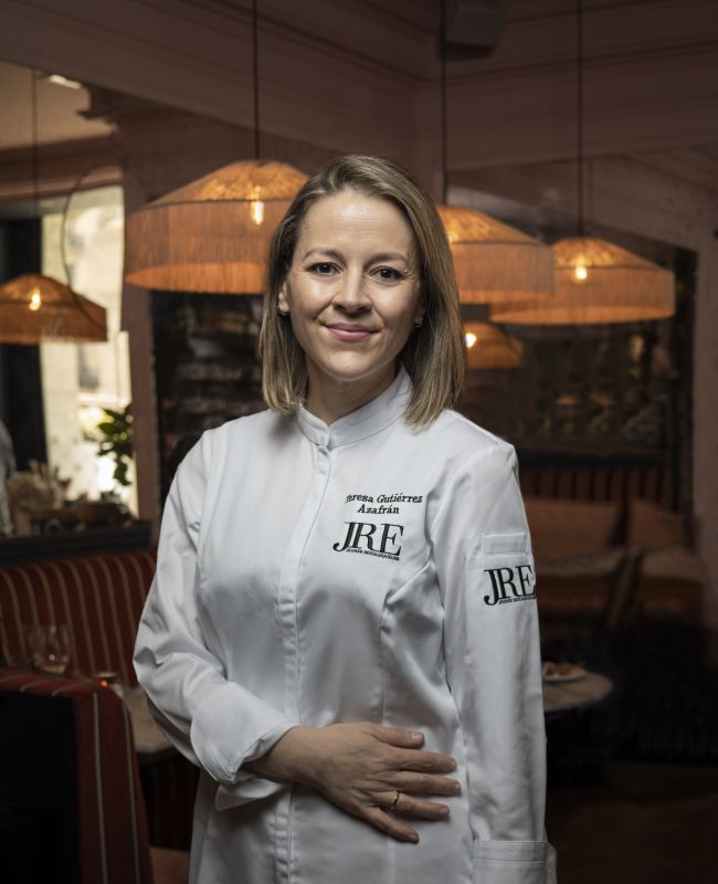 Chef Teresa Gutiérrez is the owner and chef at the Azafrán restaurant, which opened its doors in 2008. She was educated at the School of Hostelry in Valencia and at the School of Hostelry in Avignon. Before opening her own establishment, Chef Teresa spent several years in kitchens throughout Spain. Her participation in the second edition of the TV series Top Chef and the Online School of Master Chef makes her an outstanding teacher. Next, in 2019 she was among the seven finalists for Cook Revelation in Madrid Fusión. That same year she received the JRE National Gastronomy Award in San Sebastián for the Best National Trajectory in Cooking. But that’s not all. She was a speaker at the prestigious Worlds of Flavor congress in Napa (California) of The Culinary Institute of America. There, she spoke of the history of La Mancha gastronomy and its products. Finally, in May 2020 she was appointed Ambassador of the DOP Azafrán de La Mancha.