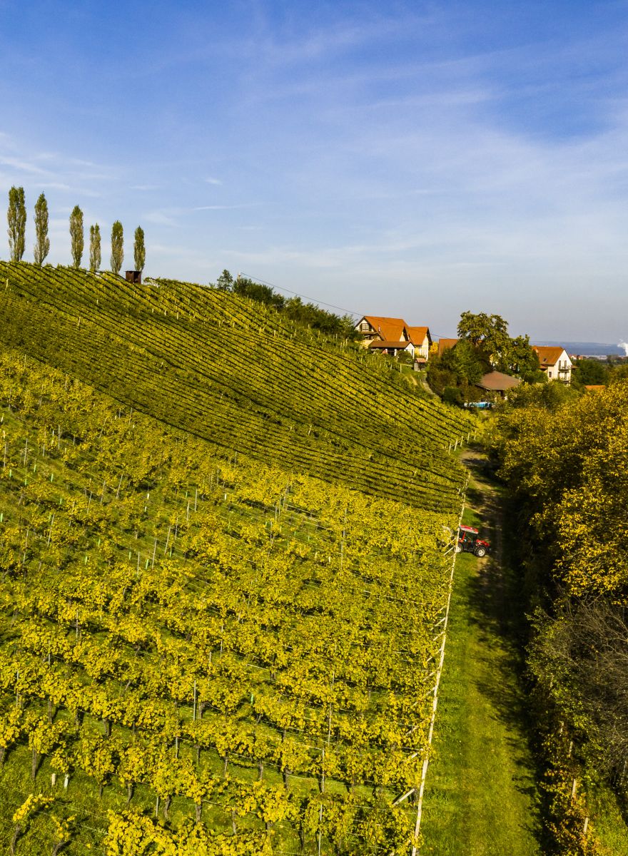 The green that runs through Styria takes the form of vineyards in the west, south, and southeast of the region, known as Vulkanland due to its geological history. The winemakers of STK (Steirische Terroir & Klassik Weingüter) are especially dedicated to this landscape and its uniqueness. This association stands for regional typicity and the highest quality, represented by its twelve members: Neumeister (Straden), Polz (Spielfeld), Tement (Ehrenhausen), Erwin Sabathi (Leutschach an der Weinstraße), Hannes Sabathi (Gamlitz), Winkler-Hermaden (Kapfenstein), Wohlmuth (Fresing), Gross (Ratsch a. d. Weinstraße), Lackner Tinnacher (Gamlitz), Wolfgang Maitz (Ratsch an der Weinstraße), Frauwallner (Straden) and Sattlerhof (Gamlitz).