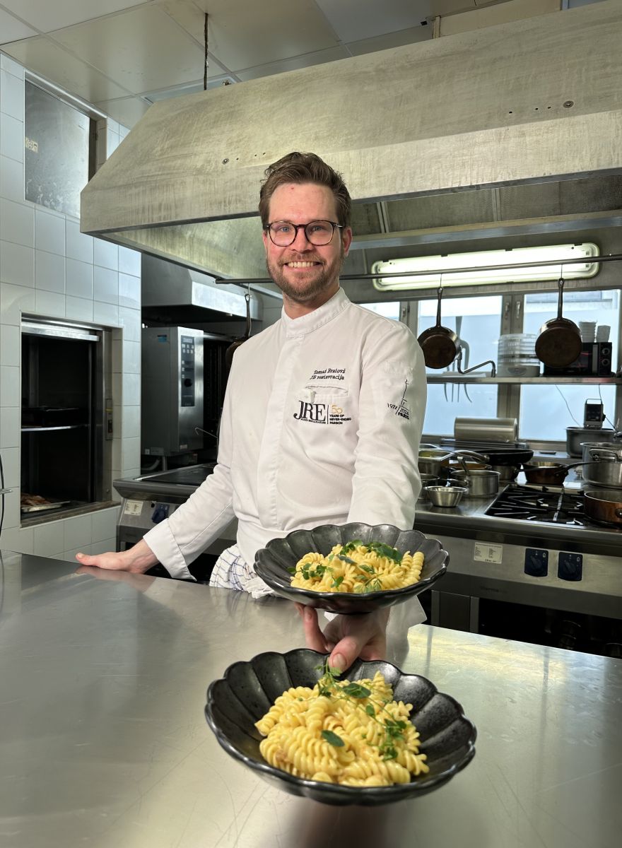 Chef Tomaž Bratovž of JB Restaurant shares a dish close to his heart: Tortiglioni with Pork Cracklings (also called Slovenian Carbonara). Inspired by his grandmother’s traditional recipe, this comforting pasta captures the warmth of home in every bite.