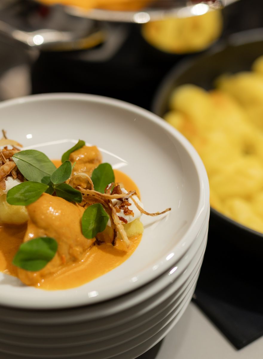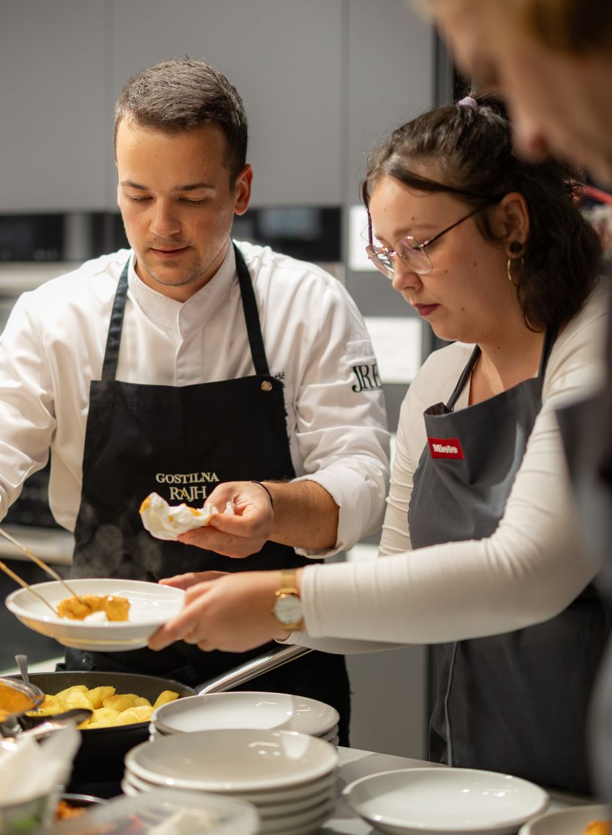 Alongside this, Chef Leon Pintarič of Gostilna Rajh brings the rich traditions of Prekmurje with his Dödöli and Chicken Paprikash. Dödöli, rustic potato and flour dumplings, pair perfectly with slow-cooked chicken paprikash, infused with sweet paprika and tender aromas.
