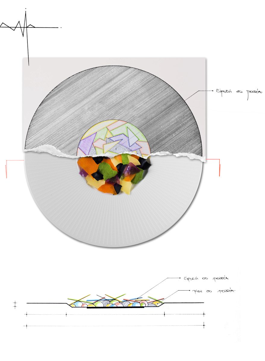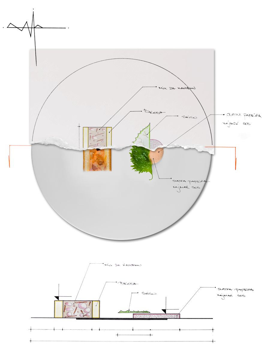 I’m not a classically trained chef – I graduated from a secondary school of architecture, and that way of thinking has stayed with me. Before I serve a dish, I first draw it. I plan the position of every element on the plate as if drafting a blueprint. I know exactly where each element will go – everything is measured, everything precise to the millimetre. In my kitchen, everyone has their own ruler.