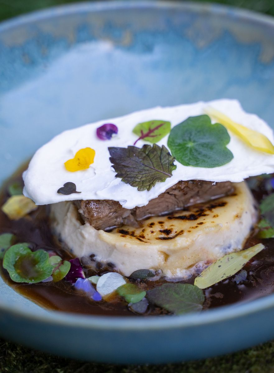 So we make it a point not to waste a single one. The dish itself is built around this idea of using what’s already around us. The miso is made in-house from beans given to us by the grannies in the village. The walnuts come from trees that grow wild all over the region. You’ll see people stopping on the roadside, beating the branches with sticks just to collect them. And of course, there’s truffle. Stakevtsi is surrounded by forest, and truffles are just part of the soil here. So we grate a bit on top, not to show off, but because it belongs.