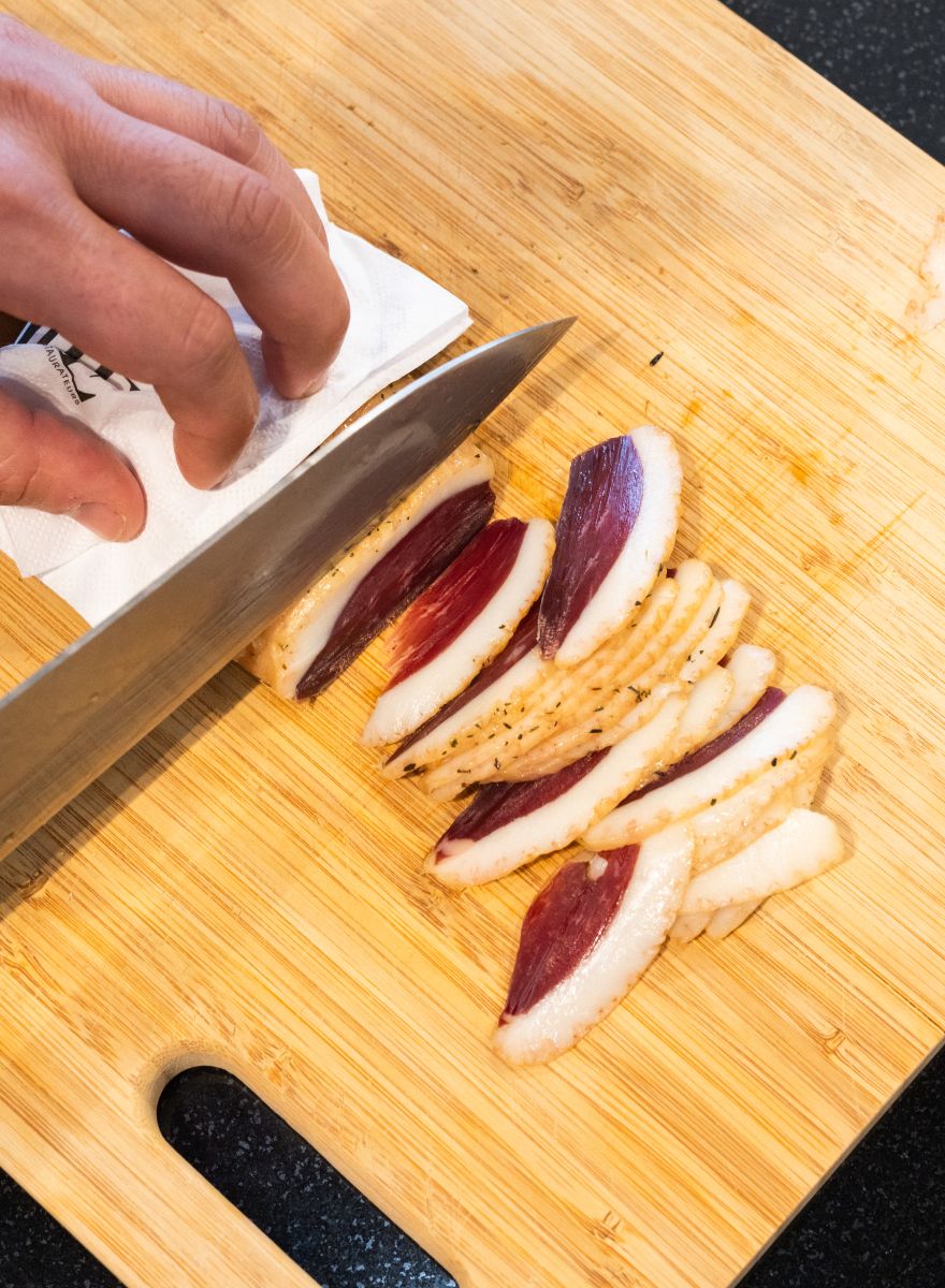 Pg Orehovec from a small town near Ludbreg presented his duck pate, clean, with pumpkin or truffles .. Try and find out which ones are your favorites? Along with pate, they also make their own duck prosciutto, and you can find all their products in the nearby Metro Center. We tasted the pate on the warm bread of the famous Kroštula from Pakoštane, and with it is the inevitable olive oil that we created in collaboration with the Chiavalon oil mill.