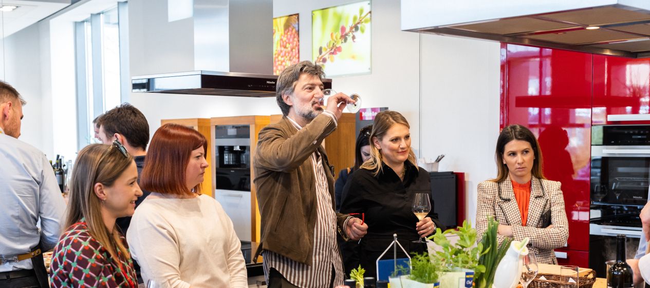 The second Miele masterclass took place on 13.4. at the Miele experience center in Zagreb starting at 5 p.m. We hosted the famous chef Bernard Korak who prepared chicken from the family farm PG Orehovec, and the Sontacchi brothers took care of the wines by the glass. A new concept of Miele masterclasses in which one JRE chef participates together with a small producer and one winemaker who are part of our JRE family.