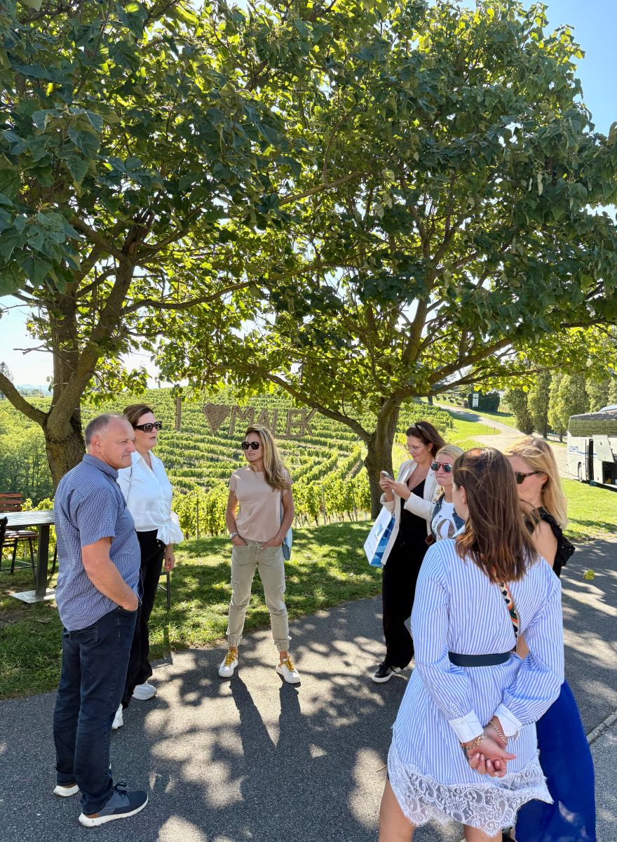 This philosophy came to life during the visit, where three JRE-sommeliers, Nina Bratovž (SI), Katharina Röder (DE), and Bethany Delong (NL), joined forces with the Puklavec team to explore grape varieties, blend wines, and exchange knowledge. Over the weekend, they immersed themselves in the world of Puklavec Family Wines: strolling through the sunlit vineyards, tasting vintages both young and aged, and delving into the family’s archive wines in the historic cellars.