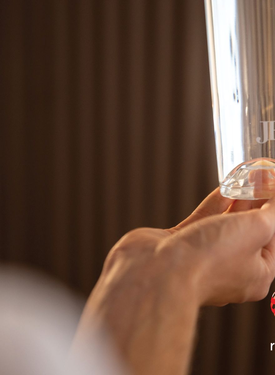 The "Catch the Reflection of Life" initiative by JRE and Hrastnik1860 - Member of Vaider Group promotes water conservation and sustainability in fine dining. Central to this project is the JRE RE◦ Water carafe, an elegant, fully recyclable glass bottle with a distinctive reflective punt symbolizing purity. Designed by Gašper Puhan, former JRE-Slovenia president, it addresses the need for eco-friendly water service in restaurants. Its innovative design has earned multiple prestigious awards, reinforcing its commitment to quality and sustainability.