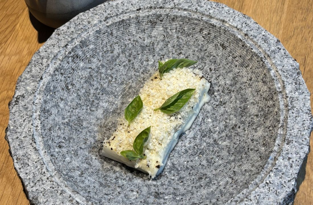Oriental calamarata with peas, lemon, salicornia and smoked scampi