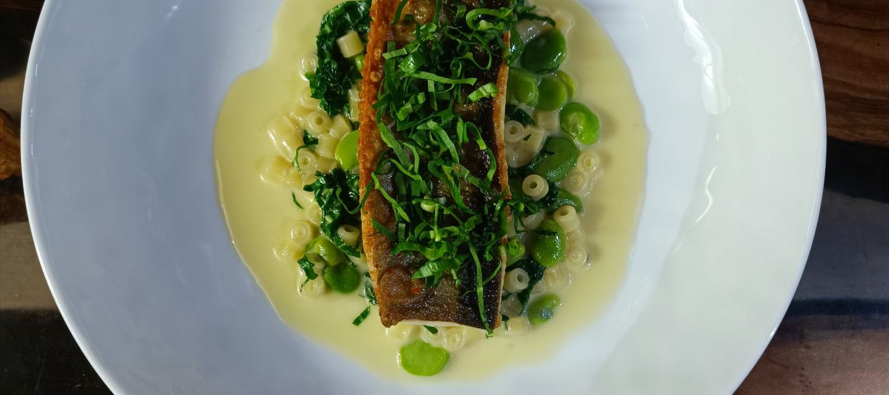 Ausseer Char with Coralli di Gragnano, Broad Beans & Wild Garlic