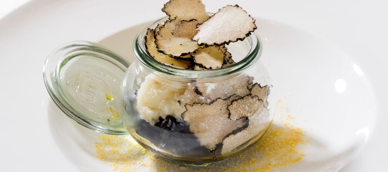 "CAPPUCCINO" OF POTATOES, CUTTLEFISH AND BLACK TRUFFLE