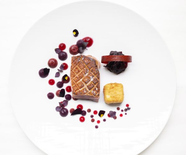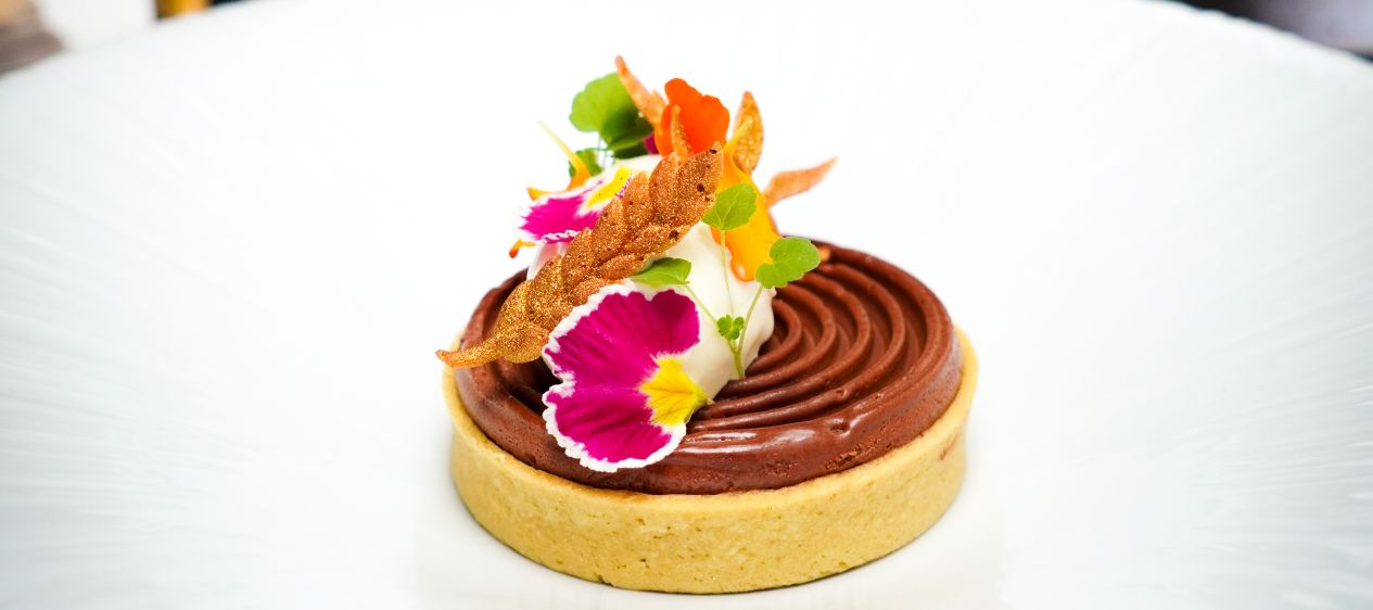 An elegant interplay of bold flavours and refined textures. This chocolate tart is made with Guaviare dark 65% from Cacao de Colombia and a touch of JRE-inspired whisky for depth and warmth. A smooth layer of salted butter caramel adds richness, while a quenelle of hay-infused ice cream brings a delicate, earthy balance. A contemporary dessert that surprises, comforts, and lingers long after the last bite.