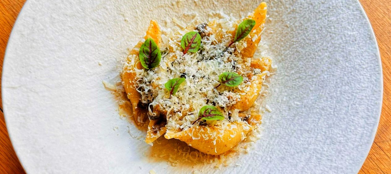 Simple to make, yet rich in flavor. This dish is inspired by Bulgarian green cheese, the only naturally molded cheese found in the Balkans. It’s paired with the umami richness of mushrooms, the earthy intensity of LentilSO paste, and the Conchiglioni di Gragnano pasta. The result is a bold and balanced combination that feels both comforting and inventive. This recipe is part of the Pasta e Basta! project by Pastificio dei Campi and JRE-Jeunes Restaurateurs.