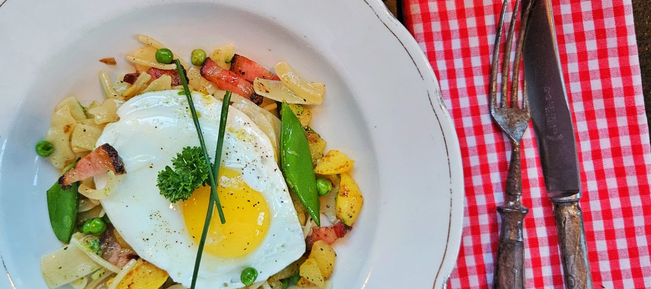 Simple, hearty, and full of tradition. This dish beautifully blends three culinary worlds: the pasta adds an Italian touch, Grenadiermarsch represents comforting Austrian home cooking, and the Frankfurter Green Sauce introduces a fresh, flavorful twist. It’s an unexpected yet harmonious combination that takes the concept of leftover cuisine to new creative heights. This recipe is part of the Pasta e Basta! project by Pastificio dei Campi and JRE-Jeunes Restaurateurs.