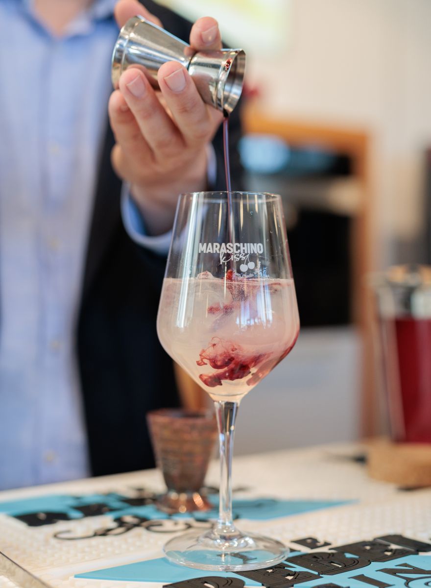 Pour Zadarski Maraschino, freshly squeezed lemon juice and cherry juice.
