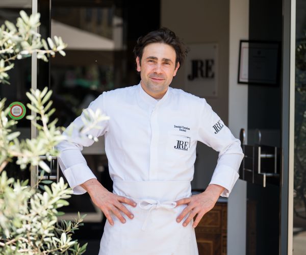 Add the red shrimp and mantis shrimp shells, sauté, deglaze with white wine, then add chopped Camone tomatoes and a little tomato puree.