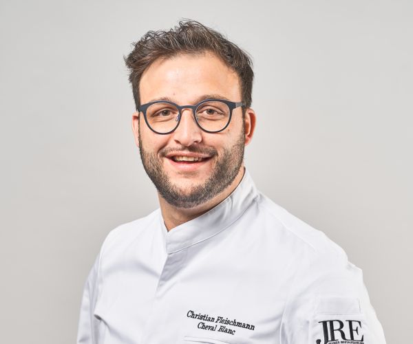 Arrange the tortellini on preheated deep plates. Pour on the beetroot essence and garnish with Parmigiano Reggiano shavings and beetroot slices.