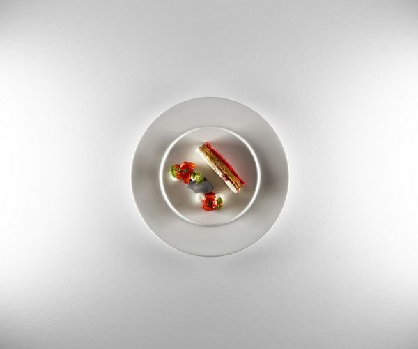 Note: While taking photos, the chef came up with another idea for the decoration: When making the black salsify vegetables, he cooked eight pieces, each 5 cm long, with it, rolled them in ground black sesame seeds and placed them additionally on the dish as a splash of colour – as it were, to symbolize the coarse, dark skin of the fine winter vegetable.